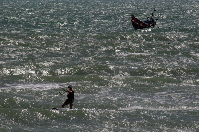 De plus la plage est bien située, du côté où nous étions peu nombreux, derrière la baie de Mui Né où 28 écoles sévissent, baptisée "Disneyland". Entre les 2 le plan d'eau est différent, moi qui cherchait des vagues c'était parfait, si vous cherchez du plus flat, il faut donc aimer le monde et côtoyer ses 80% de russes.