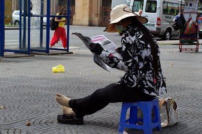 Au début nous pensions que les personnes avaient des masques sur le bas du visage pour se protéger de la pollution, mais en fait c'est pour garder une peau blanche ; en plein soleil certaines femmes sont recouvertes de la tête au pied, avec chaussettes et gants, elles se baignent même toutes habillées.