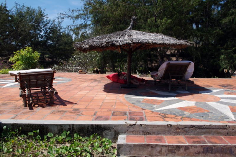 L'après-midi les soeurs ont profité des bains relaxants en piscine, alors que j'avais les yeux scotchés sur les relevés de la plage, espérant un brin d'air qui n'est jamais venu ;-( Le soir nous sommes allés au resto, inviter par la même occasion notre copain Rodrigue que nous avons rencontré au Vietnam, et qui nous a promis un vol en parapente.