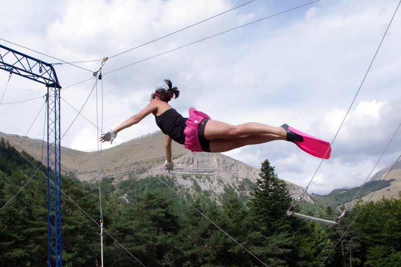 Tel que je suis maintenant préparé je suis donc redescendu, grignoter et photographier les trapézistes.