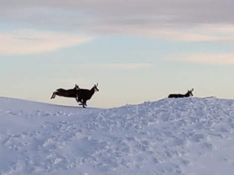 Pour le Nouvel An, nous avons opté pour l'altitude et l'isolement en milieu sauvage, soient 4 autres jours qui nous ont paru le double à Villard Reymond, décidés au dernier moment. Nous avons eu beaucoup de chance avec le soleil (mer de nuages dessous), moins avec la qualité de neige, mais Adèle était vraiment enchantée : elle a pu additionner les descentes en luge et skis, observer les chamois tous les matins, se régaler de chocolat, le tout sans faire de sieste pour ne pas en perdre une miette.