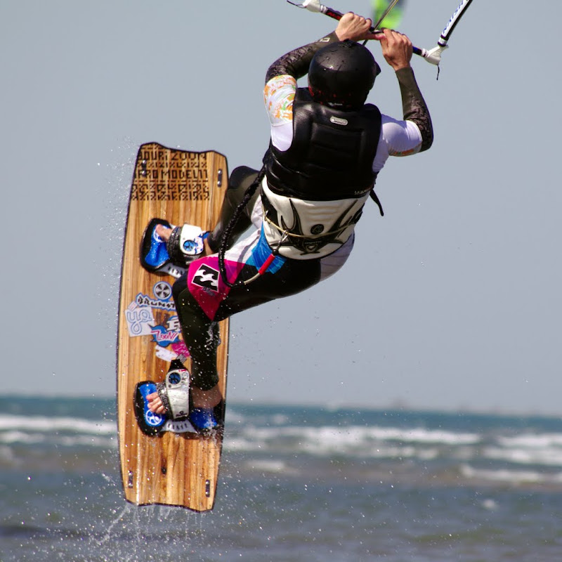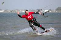 Dimanche, Olivier est donc parti à Beauduc vers 6h (ce qui rajoute 6h aller/retour... on dit ça on dit rien), a connu 3 petites galères, sinon que du bon : un ensablage au milieu d'une meute de teuffeurs dont un qui ressemblait à Hulk, à 10 mètres du mur d'enceintes, un entortillage d'aile et un harponnage du surf avec son crochet de harnais.